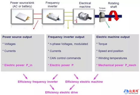 逆變器和電機匹配越好,效率越高。為了改善逆變器和電機之間匹配,電機需要通過逆變器進行特性化,有時變頻器可能需要改進算法來更有效地驅(qū)動電機。這只能通過分析傳動系所有工作點的原始數(shù)據(jù)來完成。