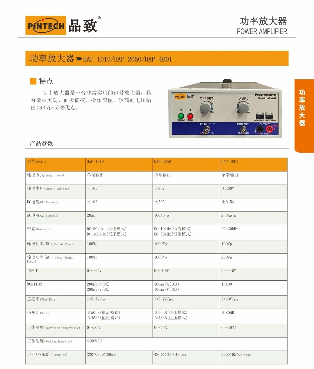 在選擇功率放大器時,查閱規(guī)格參數(shù)常會發(fā)現(xiàn)一個看似矛盾的現(xiàn)象:例如品致 HAP-4001 放大器,其直流電流額定值僅為 0.5 A,而交流電流卻可達(dá) 2.8 A(峰峰值)。這種差異并非設(shè)計矛盾,而是反映出放大器的核心限制——熱耗散能力才是真正的瓶頸,而非單純的電流輸出能力。