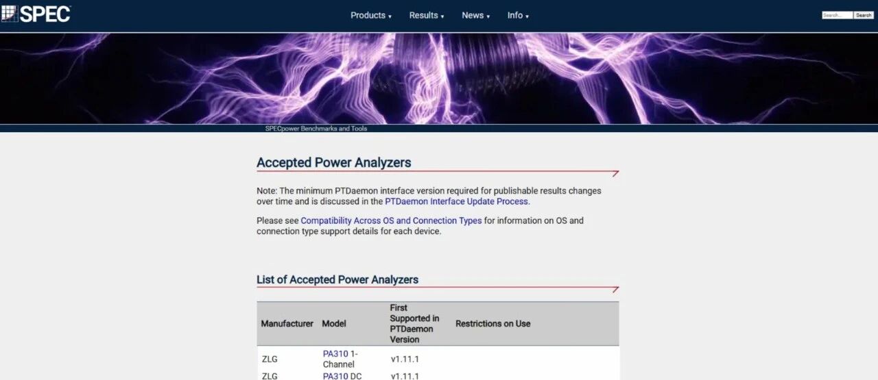 致遠(yuǎn)儀器PA310高精度功率計(jì)正式通過SPEC組織的官方認(rèn)可,成為首款進(jìn)入該列表的國產(chǎn)功率分析儀器,意味著在服務(wù)器能效這一關(guān)鍵測試領(lǐng)域,有了經(jīng)過國際標(biāo)準(zhǔn)驗(yàn)證的、可靠的國產(chǎn)方案。 圖 3 SPEC官網(wǎng)列出的受支持功率分析儀器