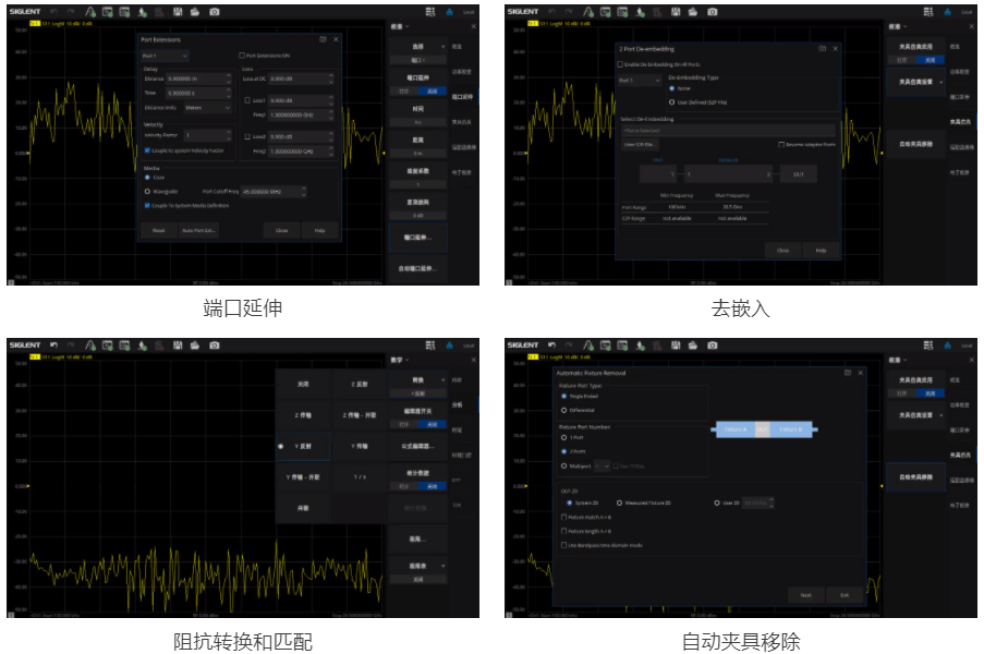 SNA5000B支持響應(yīng)校準(zhǔn)、全二端口校準(zhǔn)和TRL校準(zhǔn)等多種校準(zhǔn)方式,確保測量結(jié)果的準(zhǔn)確性和可靠性;同時,SNA5000B還具備包括端口延伸、去嵌入、阻抗轉(zhuǎn)換與匹配、自動夾具移除等多種功能,能便捷消除夾具效應(yīng),其完善的誤差修正算法能夠有效消除系統(tǒng)誤差,為用戶提供真實、可靠的測量數(shù)據(jù)。